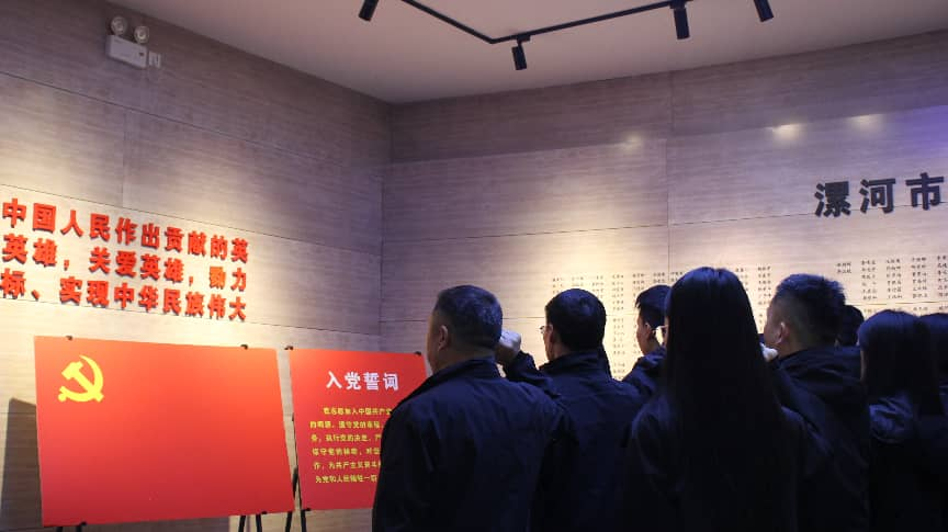 随后,全体人员一同走进革命纪念馆,在讲解员的引导下,认真聆听革命先烈的英勇事迹,观看馆内陈列的历史照片、文献资料与革命实物,重温那段波澜壮阔的革命历程,接受了一场深刻的红色精神洗礼。,在张勇同志的带领下,全体党员面对鲜红的党旗,举起右拳,庄严宣誓。铿锵有力的誓言既是对革命先烈的深情告慰,也是全体党员不忘初心、牢记使命的坚定承诺。