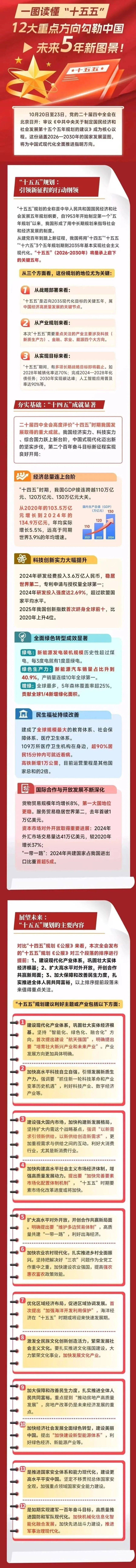 2025年10月23日,中国共产党第二十届中央委员会第四次全体会议审议通过了《中共中央关于制定国民经济和社会发展第十五个五年规划的建议》,明确了“十五五”时期(2026-2030年)的发展方向、主要目标和重点任务。这一规划是中国基本实现社会主义现代化的“关键蓝图”,事关未来五年乃至2035年的国家发展大局。
