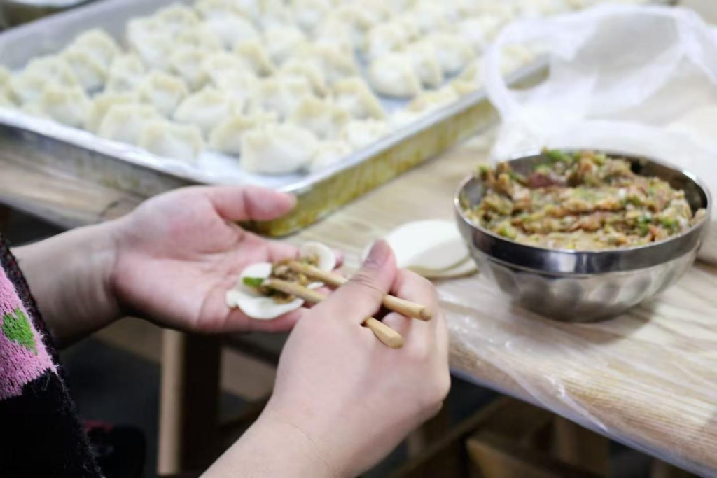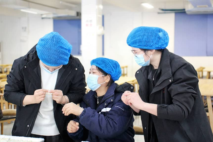活动当天,食堂内暖意融融、热闹非凡,浓厚的节日氛围驱散了冬日的寒凉。30余名党员及志愿者分工协作,各显身手、默契十足。经验丰富的“巧手”们动作娴熟流畅,指尖翻飞间,一个个造型匀称、饱满圆润的饺子便整齐排列;初次尝试的参与者也毫不怯场,在身旁同事的耐心指导下,从生疏摸索到渐入佳境,包出的饺子虽形态各异,却满含诚意与热情。现场欢声笑语不断,大家一边忙碌着手中的饺子,一边畅谈工作趣事、分享生活感悟,指尖传递的不仅是饺子的温度,更是同事间的情谊与团队的向心力。