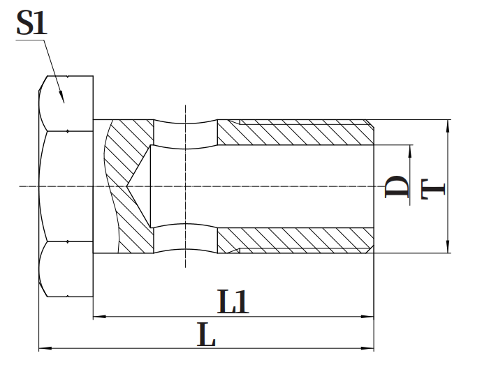 | PART NO. | THREAD T | L | L1 | S1 |