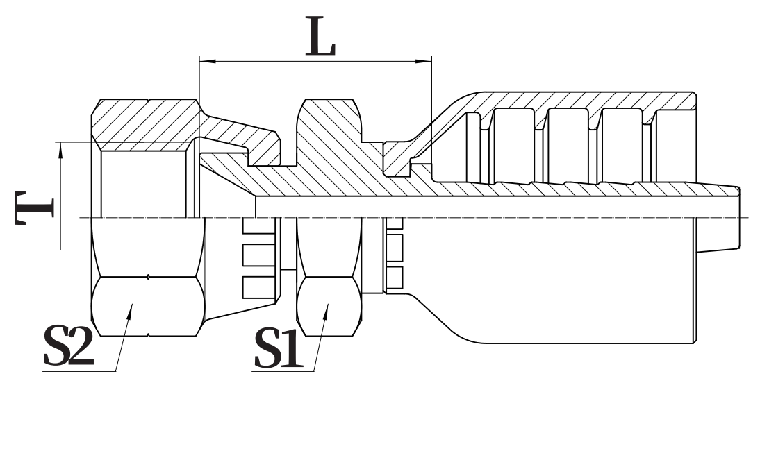 | PART NO. | THREAD T | 公称内径 DN | 标号 DASH | L | S2 | S1 |