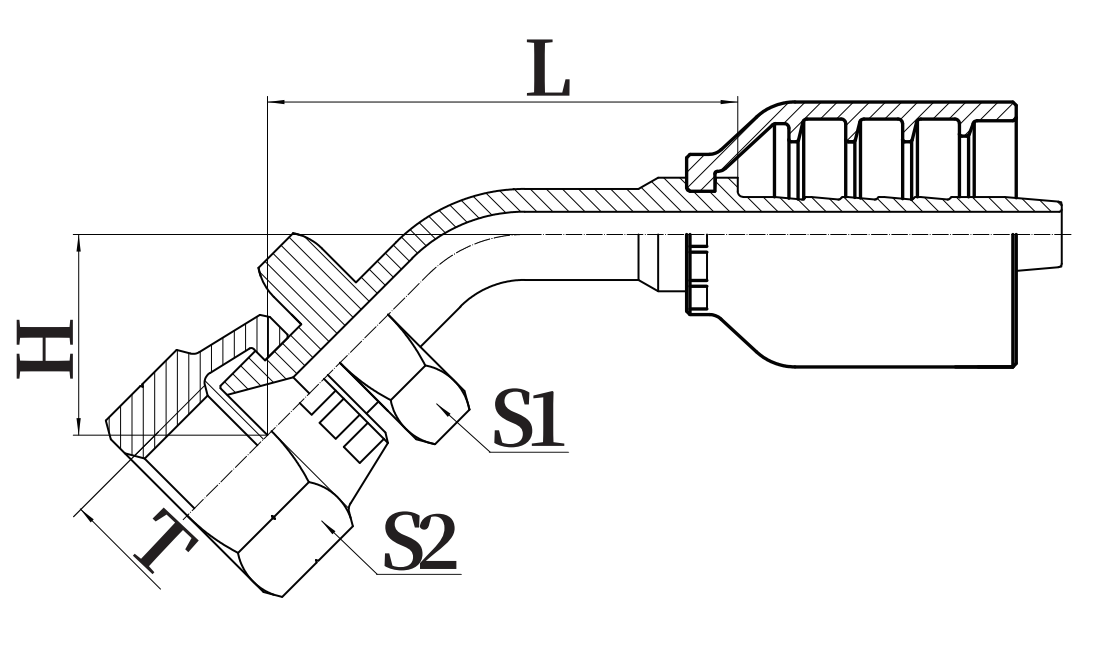 | PART NO. | THREAD T | 公称内径 DN | 标号 DASH | L | H | S1 | S2 |