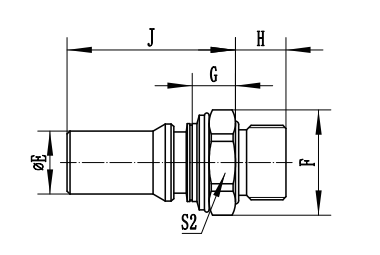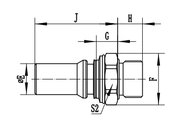UQDB | 螺纹/端头尺⼨ | ΦE | F | G | H | J | S2六⽅ |